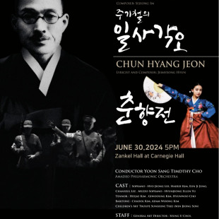 한국 창작 오페라 두 편이 30일(현지 시각) 미국 뉴욕 카네기홀 중극장에서 공연된다. 조선오페라단(대표 최승우)은 “한국 최초의 창작 오페라로 꼽히는 현제명의 ‘춘향전’과 ‘주기철의 일사각오’(작곡 임세정) 등 두 편을 공연하는 창작 오페라 페스티벌을 카네기홀에서 개최한다”고 밝혔다. 오는 9월 서울에서도 창작 오페라 페스티벌을 열 예정이다. 가격 50~150달러(6만9000~20만8000원).